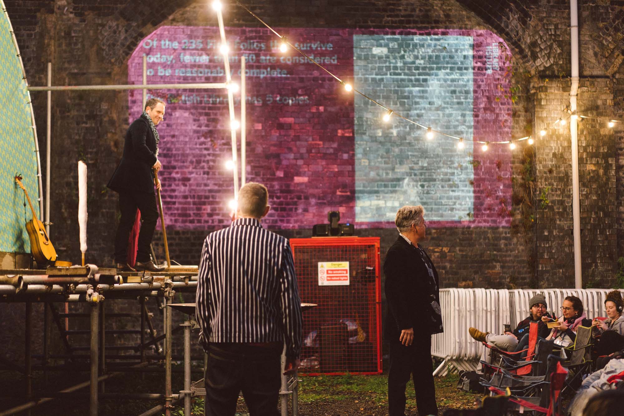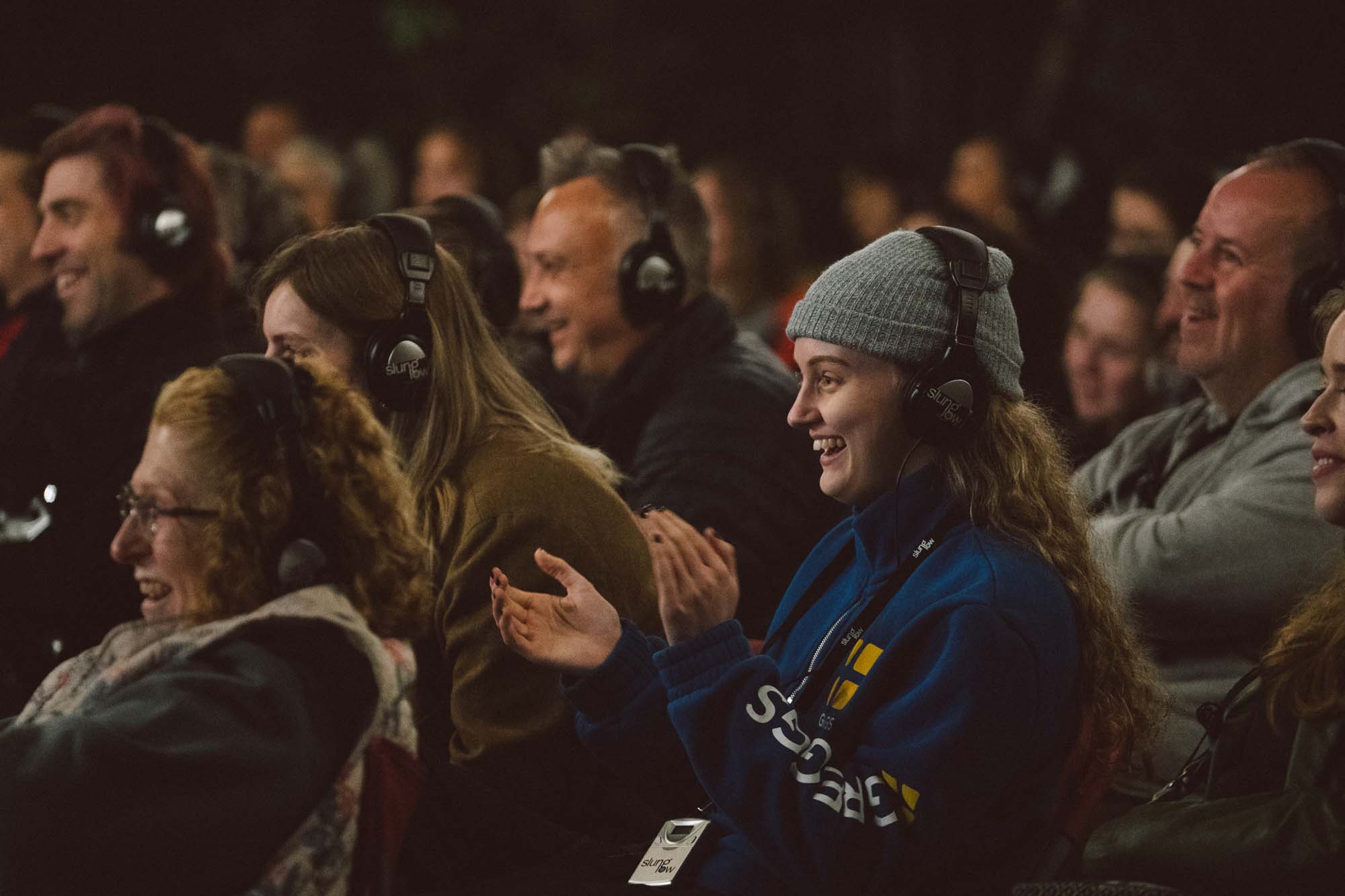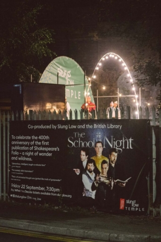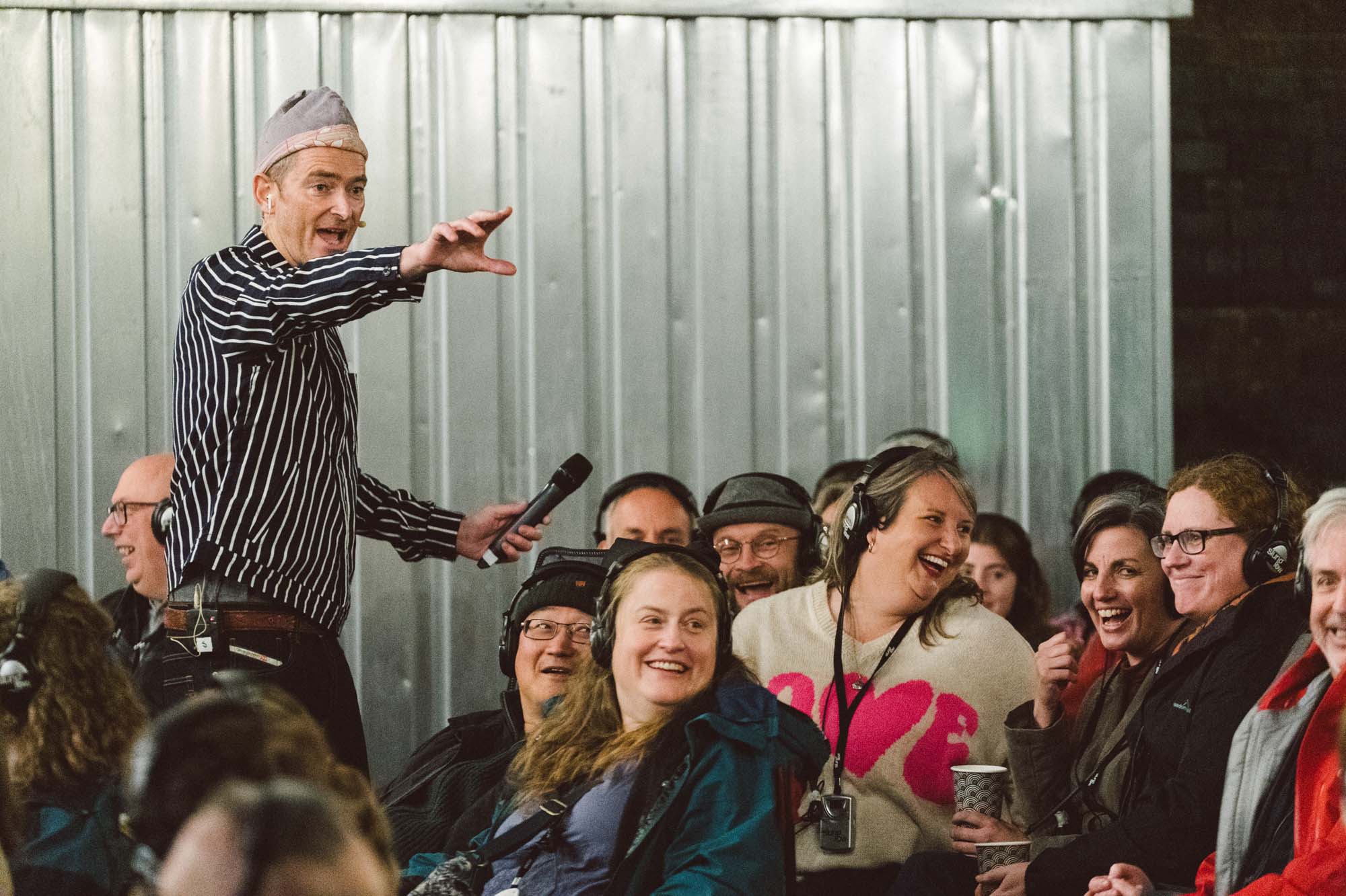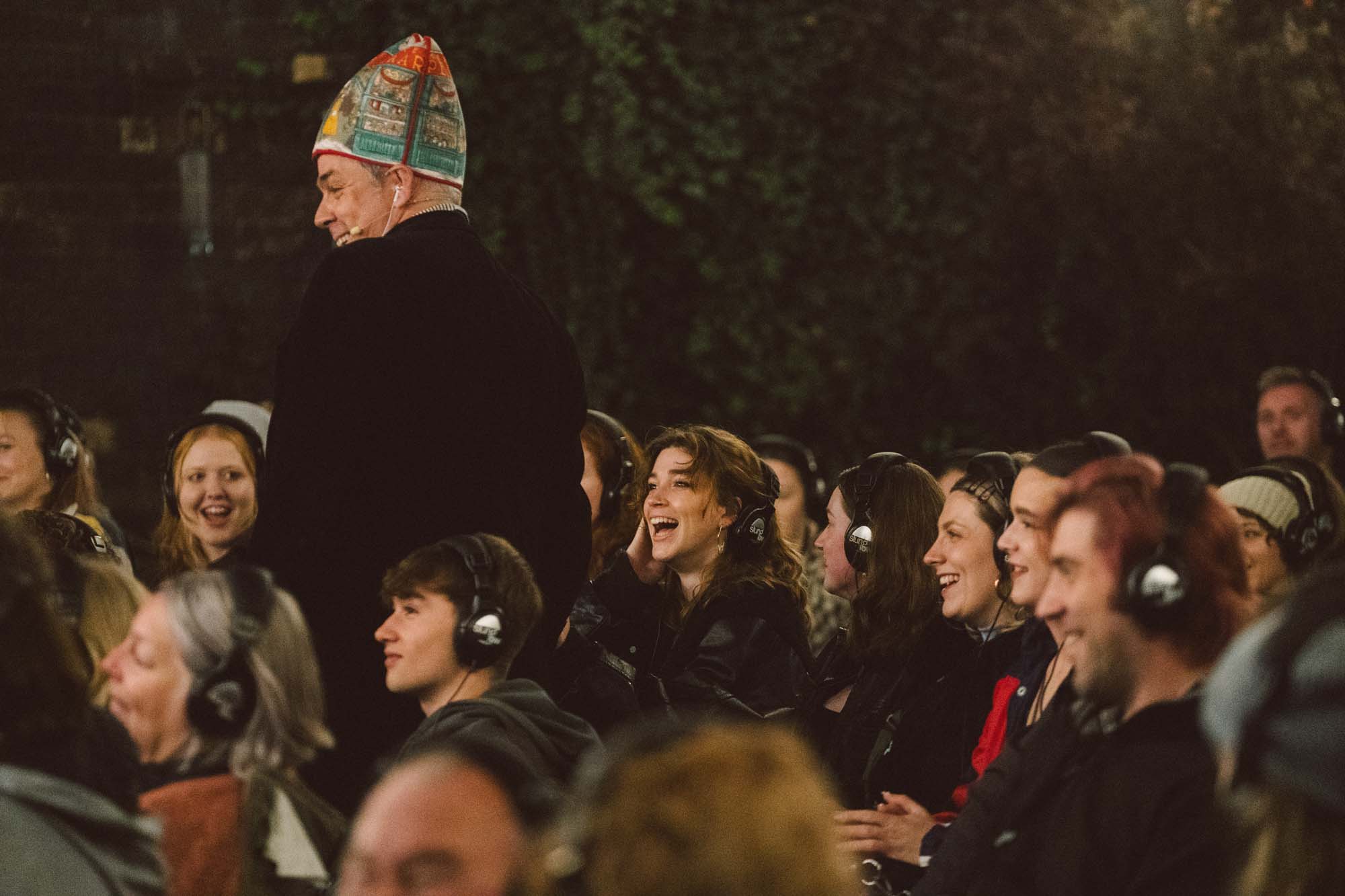 After workshops at Elliott Hudson Sixth Form College on the Thursday, we ended the week with a tumultuous gig at Slung Low’s outdoor Temple venue in Holbeck. A big, happy crowd ended the week with laughter and wonder!