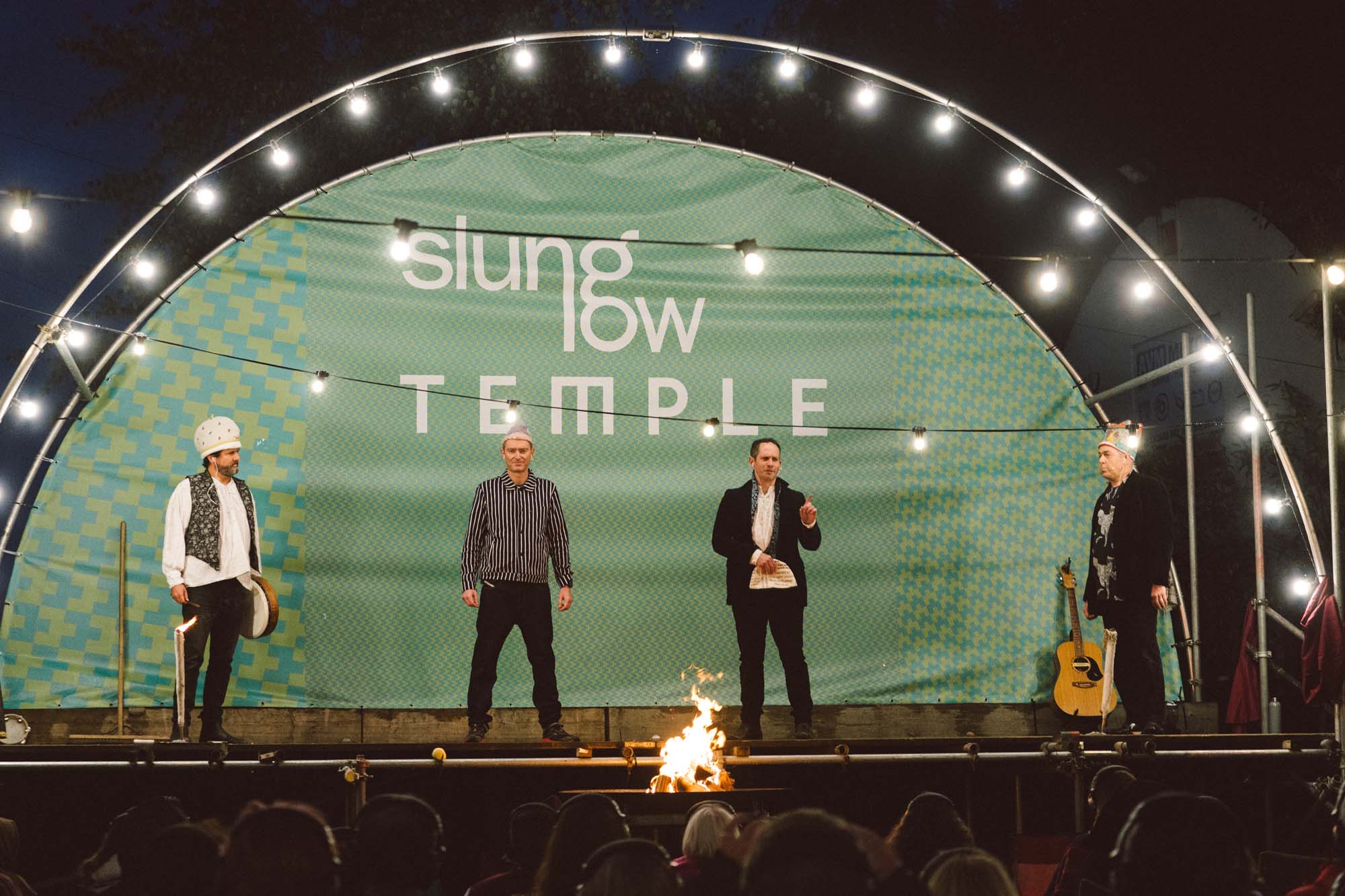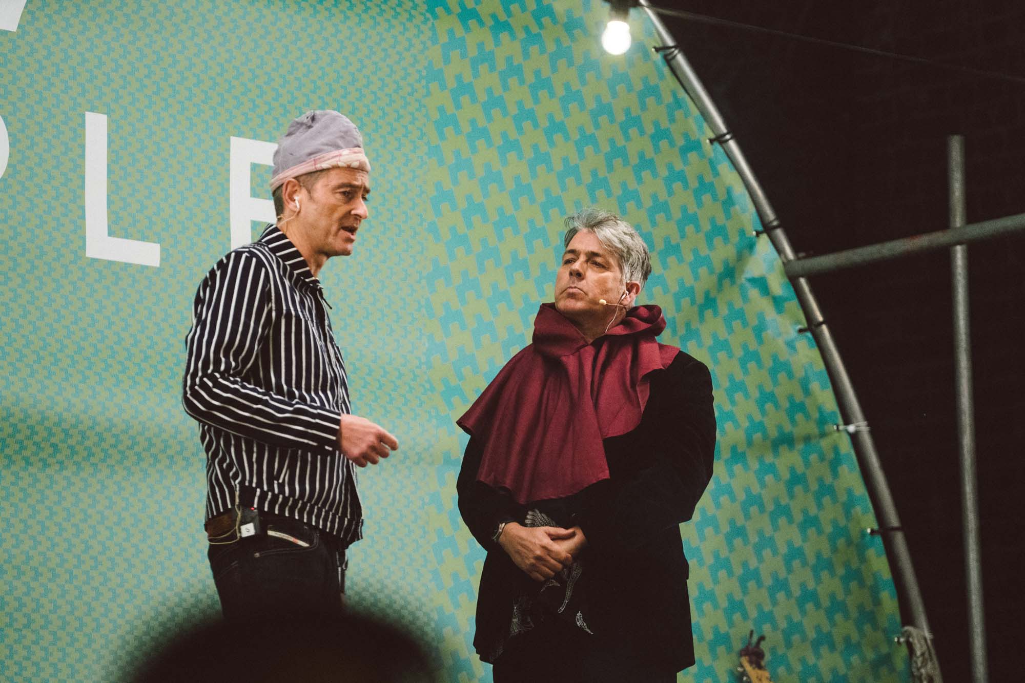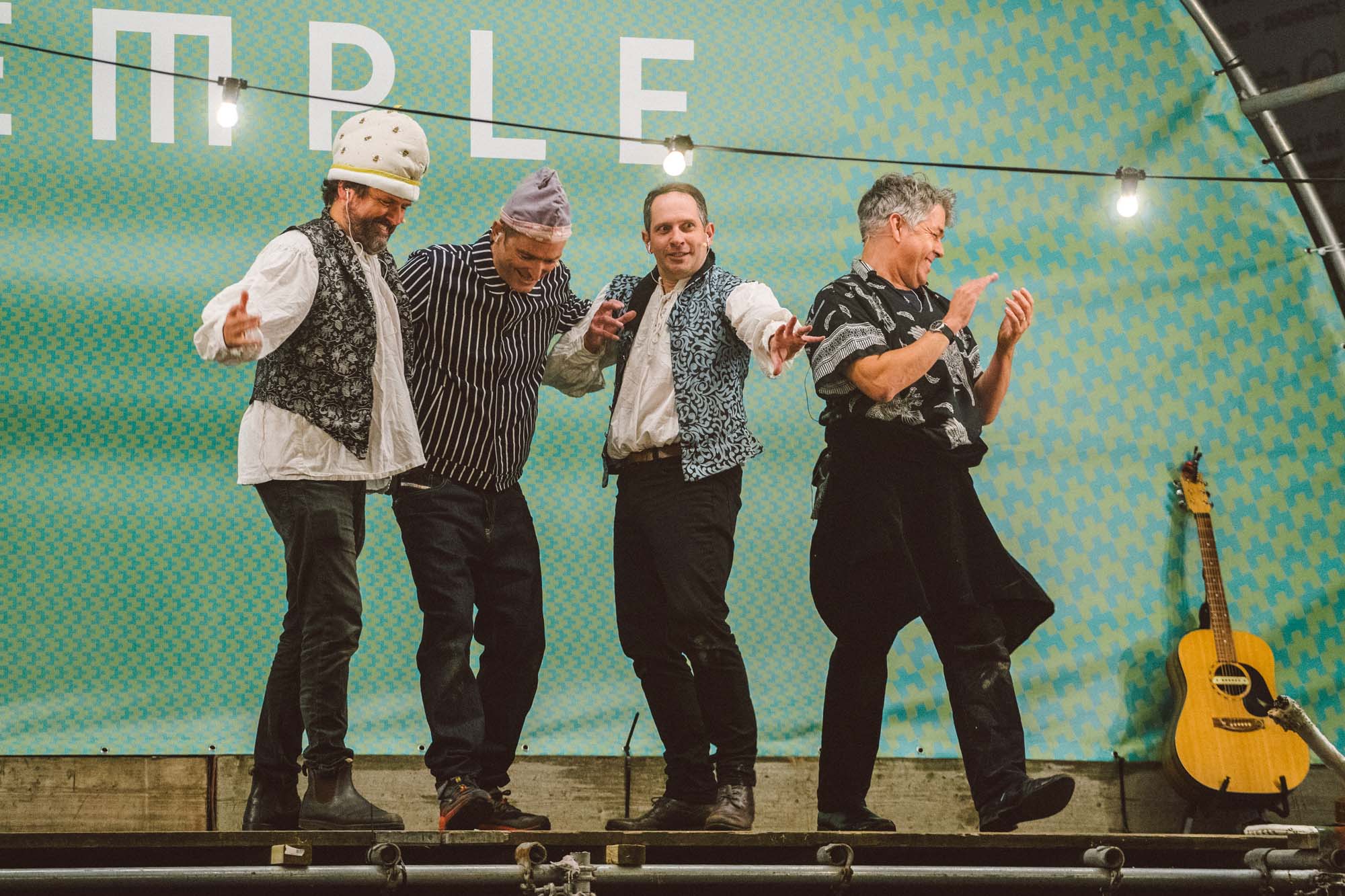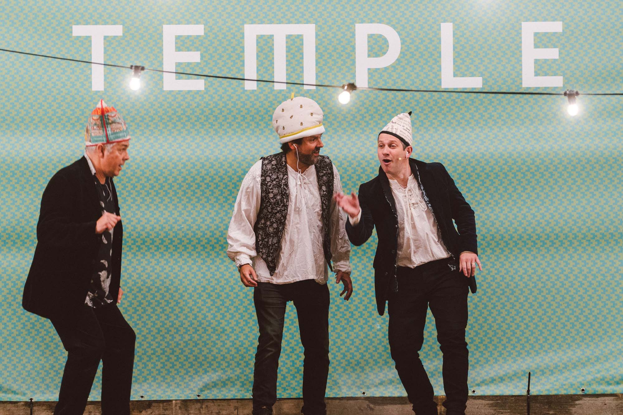 After workshops at Elliott Hudson Sixth Form College on the Thursday, we ended the week with a tumultuous gig at Slung Low’s outdoor Temple venue in Holbeck. A big, happy crowd ended the week with laughter and wonder!